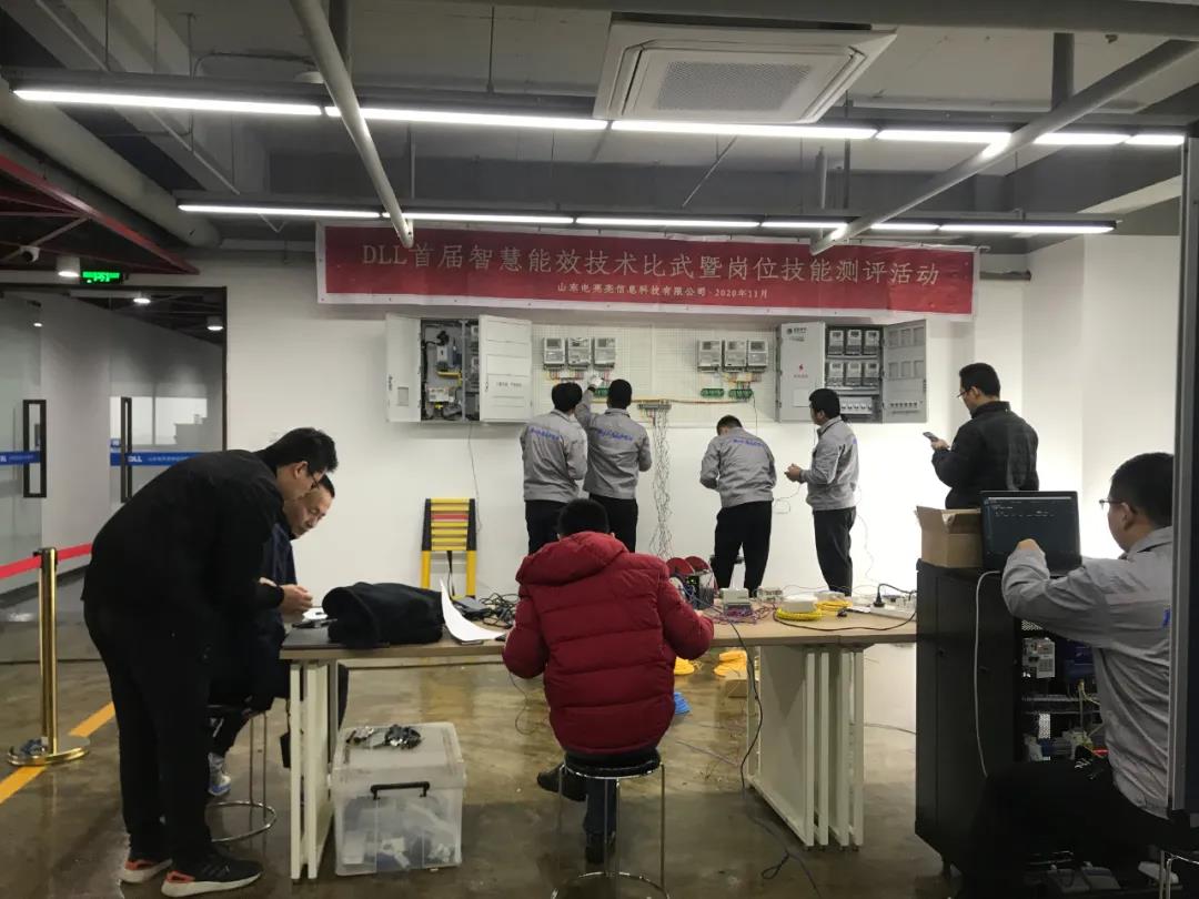 考试过后,带电作业实操竞赛在实训基地如火如荼地进行,决赛的6名选手精神昂扬。比赛分a、b两个区域进行,选手需要带电安装集中器以及调试相应设备,随后需要完成通讯机柜的设备调试通讯。